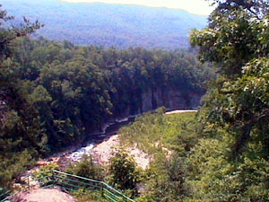 The Breaks Interstate Park is shared and managed by both Virginia and Kentucky and is many square miles in size. The campground is actually four miles off route and is the typical place to stay but I pushed onward and upward. The second photo shows a very nice, deep gorge with a fairly high volume river, the Pound River. People were rafting and tubing in the gorge below.