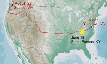 I also rode into Kentucky today - finally done with Virginia which is the longest and many say the hardest of all states.
