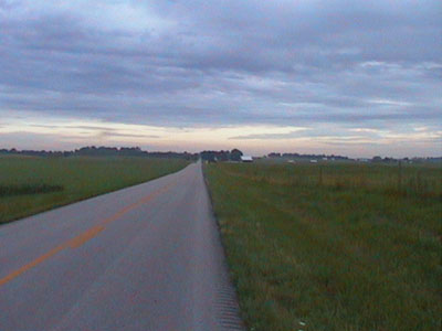 I got an early start under cloudy skies this morning. A few miles into the ride I crossed a highway at an exit. These highway exits always have cheap truckstop breakfasts so I decided to partake in one.Some liquid sunshine started about 9:00am and tapered off a half hour later. I rode in the rain and it sure felt good! It keeps me cool and sure beats the sun!