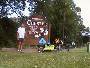 Chester was supposed to be an all service town but there were no services along the route except for a small gas station. It was also a horrible climb up into town and then a steep drop back to the river again. I should have followed the truck route signs that ran along the river. The town sits on a 300 foot bluff above the river but I didn't get much of a view from up there.