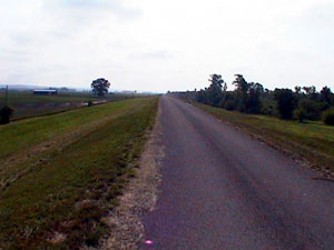 Much of the riding was along the Mississippi river levee which is far more impressive and substantial than the levee we have in my hometown of Lock Haven, Pennsylvania. The flood plain is extremely wide and they work very hard to keep water off the fields. There are large diesel and electric pumps that move water from the inland farms to the other side of the levee into the river. Some were running today after last night's rain. The first picture a view along the road that runs on top of the levee. The second picture is of a farm along the river.