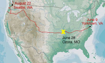 I have the Ozarks to look forward to in the next few days then the Flint Hills and plains in Kansas. I'm really looking forward to the Rockies. Other cyclists say that the grades aren't bad and the views are great.
