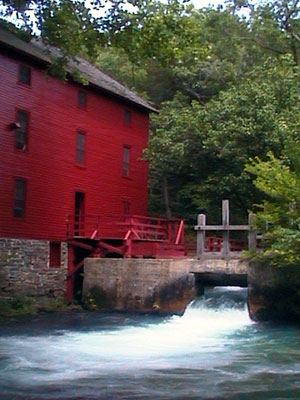 The highlight of the day was Alley Spring, a National Park Service site about five miles west of Eminence. This spring bubbles up from underground at a rate of 81 million gallons per day. The water is crystal clear and quite cool - it flows at an outstanding rate much like Big Spring in Bellfonte, Pennsylvania near where I'm from. I think this spring has a higher flow rate. A mill was built on the spring to grind and process wheat in the 1800s and has been restored to its original condition with replicas of the original mill works.
