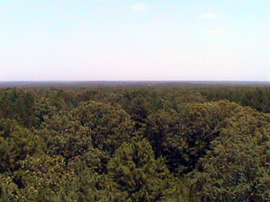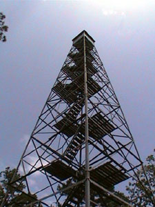 There was a long, hard climb out of Alley Spring up onto a large plateau. There is a fire tower that the public is permitted to climb. Here is a picture of the tower and one of the great view from the top.