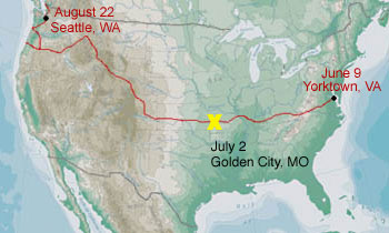 The bike hostel in Golden City is awesome. They have five beds, laundry facilities, a hot shower, air conditioning, and a living room with a T.V. The library on main street allowed me to check my e-mail and do some Internet banking and I had some pie at Cooky's. Cooky's is an awesome place that cyclists often go to. They have a log book and an article on the wall of the restaurant from Farm & Ranch Living magazine that tells about the repuation their pie has among cyclists and local farmers. Cooky's has their own farm where they raise beef cattle and they buy all their ham, potatoes, and vegetables locally. It reminded me of the Lone Star restaurant in Farmington, Pennsylvania near the scout camp I worked at for a decade.