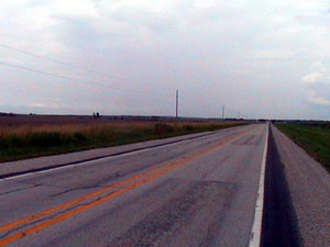 Here is a picture of some flat road running through prairie. I suppose this is what Kansas will be like.