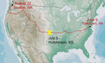 Hutchinson is a great city. Some day I'll have to return to visit the Cosmosphere, a huge aerospace museum here in town. They are hosting the US Open Womens golf tournament right now here in town. Traffic is a little crazy and the restaurants are packed. We ate at an all you can eat mexican restaurant where we fueled up for tomorrow.
