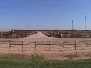 The first picture below is of Scott City from about five miles away. The grain elevators can be clearly seen from about 15 miles away and the towns grow up around these elevators. The second shot is of a feed lot that is a common sight around here. It's nice to see them unless they are on the south side of the highway when the winds blow that wonderful smell of thousands of head of cattle toward me.