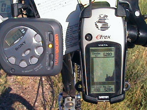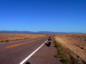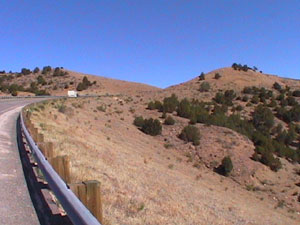 Joe and I started our climb out of the Lake Pueblo State Park at around 5000 feet and peaked out in Wetmore around 6200 feet. We then had a fast 11 mile descent into Florence which lies at 5300 feet. This is just a taste of what we have coming up. The grades here are not steep but are very long. Here are a few shots from this morning. The first is of me riding toward the mountains just west of Lake Pueblo. The second is of my GPS when I first hit 5280 feet above sea level (one mile high). The third shows the typical grades of mountain passes out here and the fourth is looking down into a valley just east of Wetmore.