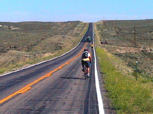 We got a fairly late start today at about 8:00am. We stayed up late last night and ate a real breakfast at a restaurant. Mike rode with us from Cowdrey to the Wyoming border and back. I always treasure the ceremonial and obligatory pictures taken at the state borders. [Joe Deely, Mike Cullerton, me]. Wyoming is the seventh of ten states on the TransAm route. I'll add Washington State as I ride from Oregon to Seattle for my flight home.