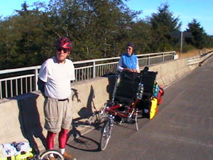 Again, I'm the only moron headed north as far as I can tell. I saw seven southbound riders during my travels and stopped to talk with four of them. The first two I met early in the day. They are riding a Rans tandem recumbent with panniers. The second two I met very late in the day at the Tillamook Cheese Factory. They were at the bike rack when I came out of the building and we talked for a while. They are both elementary teachers from California and are heading south along the coast for a few weeks.