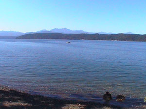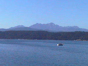 I am staying at Twanoh State Park this evening. It is situated along the Hood Canal about ten miles south of Belfair, Washington. You can see the mountains in the Olympic National Park in the distance from here. The campground was completely full so the campground host told me to stay in the day use area. There's a nice enclosed pavillion with running water and electricity and I get to stay for free. The campsites only have a picnic table and cost $16.00. They never turn away hikers or bikers - I got lucky today.