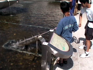 The City Pass includes a sightseeing cruise around the harbor. I was thoroughly enjoying the cruise until the boat ran out of fuel. That's right - fresh out of fuel. We drifted in the center of the harbor until the company's maintainence boat towed us to the fuel station in the south end of the harbor. It took about 45 minutes to refuel the boat then they couldn't get it started. In the mean time the bar served free drinks and once we got back to port they told us that we could redeem our ticket stub for another cruise so I'll go on one of the long, expensive ones tomorrow. Here are pictures of the maintenance boat, fuel station, and they guy who refueled our boat.